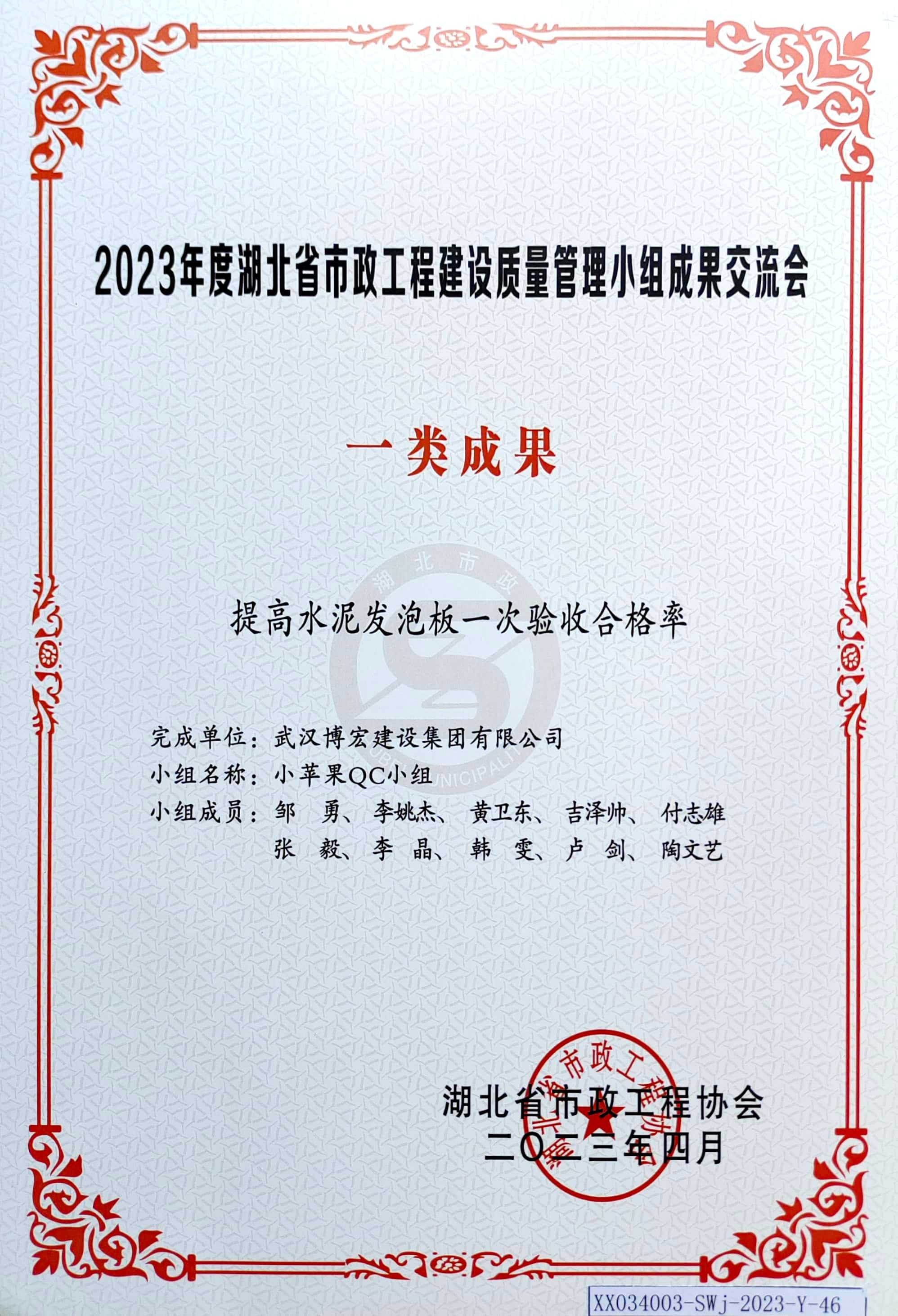 2023年度湖北省市政工程建設(shè)質(zhì)量管理小組成果交流會(huì)-一類(lèi)成果