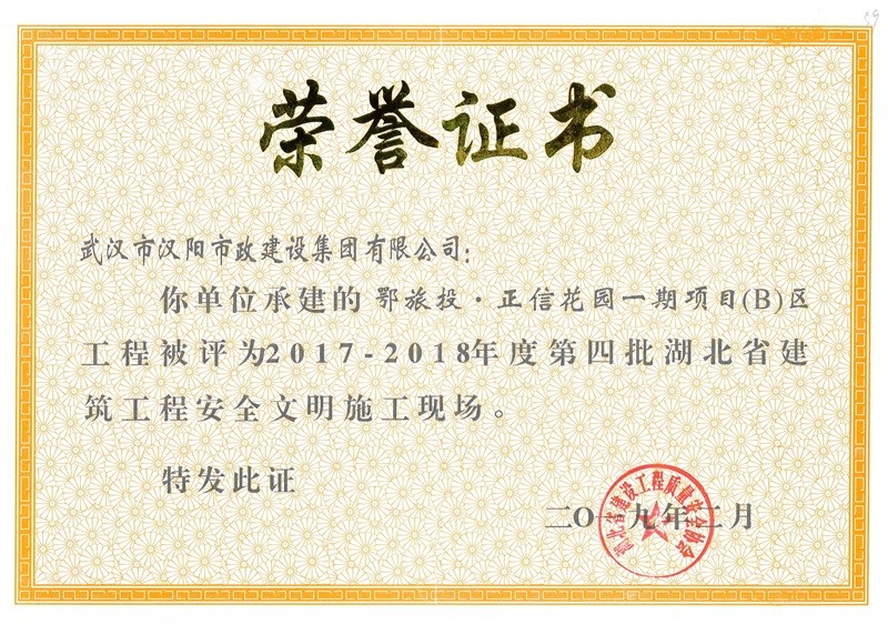 2017-2018年度第四批湖北省建筑工程安全文明施工現(xiàn)場(正信花園)