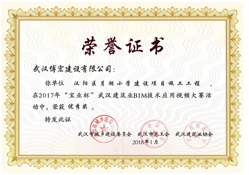 結(jié)構(gòu)優(yōu)質(zhì)工程證書(芳草中學(xué)綜合2號樓)