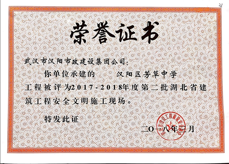 2017-2018年度第二批湖北省建筑工程安全文明施工現(xiàn)場(漢陽區(qū)芳草中學(xué))