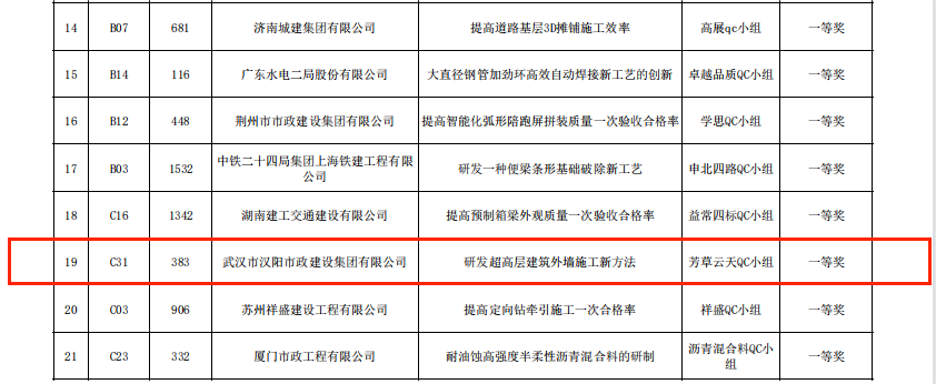 近日,中國(guó)建筑業(yè)協(xié)會(huì)、中國(guó)施工企業(yè)管理協(xié)會(huì)與中國(guó)市政工程協(xié)會(huì)工程建設(shè)質(zhì)量管理小組活動(dòng)成果大賽獲獎(jiǎng)名單陸續(xù)出爐,基于中南科研設(shè)計(jì)中心建設(shè)項(xiàng)目現(xiàn)場(chǎng)情況總結(jié)出的《施工電梯基礎(chǔ)支撐體系的研制》、《提高鋼結(jié)構(gòu)對(duì)接焊縫驗(yàn)收合格率》與《研發(fā)超高層建筑外墻施工新方法》3項(xiàng)QC成果榮獲國(guó)家級(jí)獎(jiǎng)項(xiàng)。