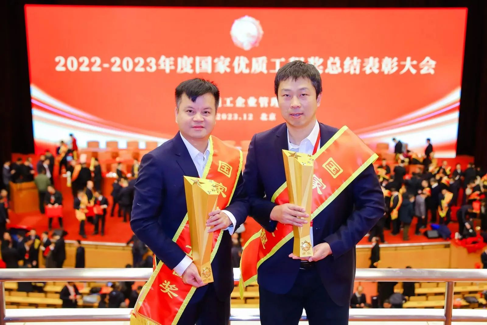 12月24日,2022~2023年度國家優(yōu)質(zhì)工程表彰大會在北京隆重召開,公司總經(jīng)理助理李暉、項目經(jīng)理童威接受頒獎。博宏建設(shè)集團(tuán)捧回了兩座浸染著汗水與拼搏的榮譽(yù)獎杯。
