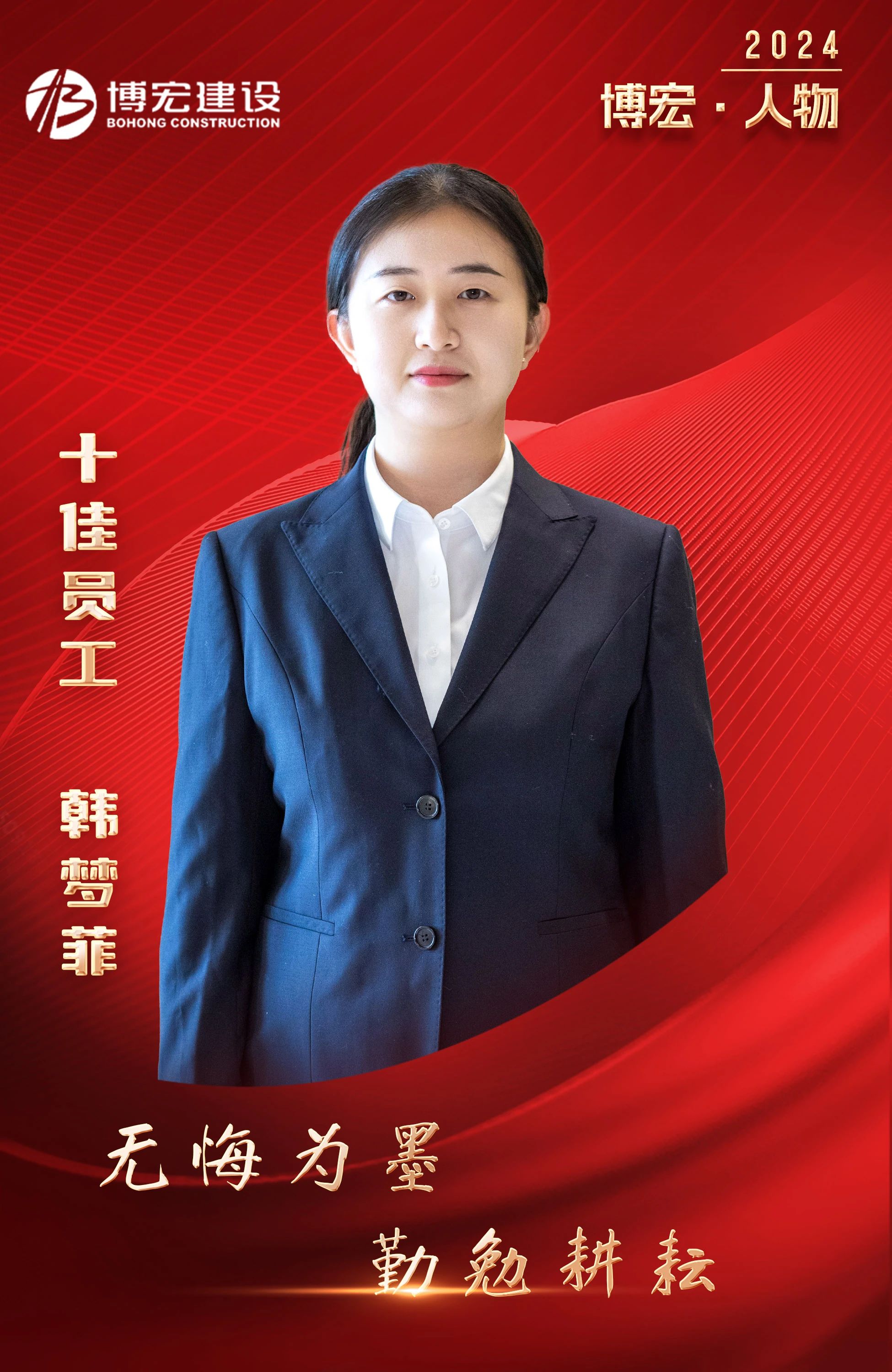 韓夢菲,黨建宣傳崗,入職博宏近2年,主導(dǎo)策劃了多次專題宣傳活動,讓宣傳思想工作更有滲透力、說服力、吸引力,逐步成長成為宣傳思想文化戰(zhàn)線上的骨干,榮獲博宏建設(shè)集團2023年度“十佳員工”。從宣傳專員到黨建專員,崗位轉(zhuǎn)變,但服務(wù)業(yè)務(wù)部門,為公司賦能的初心不變。