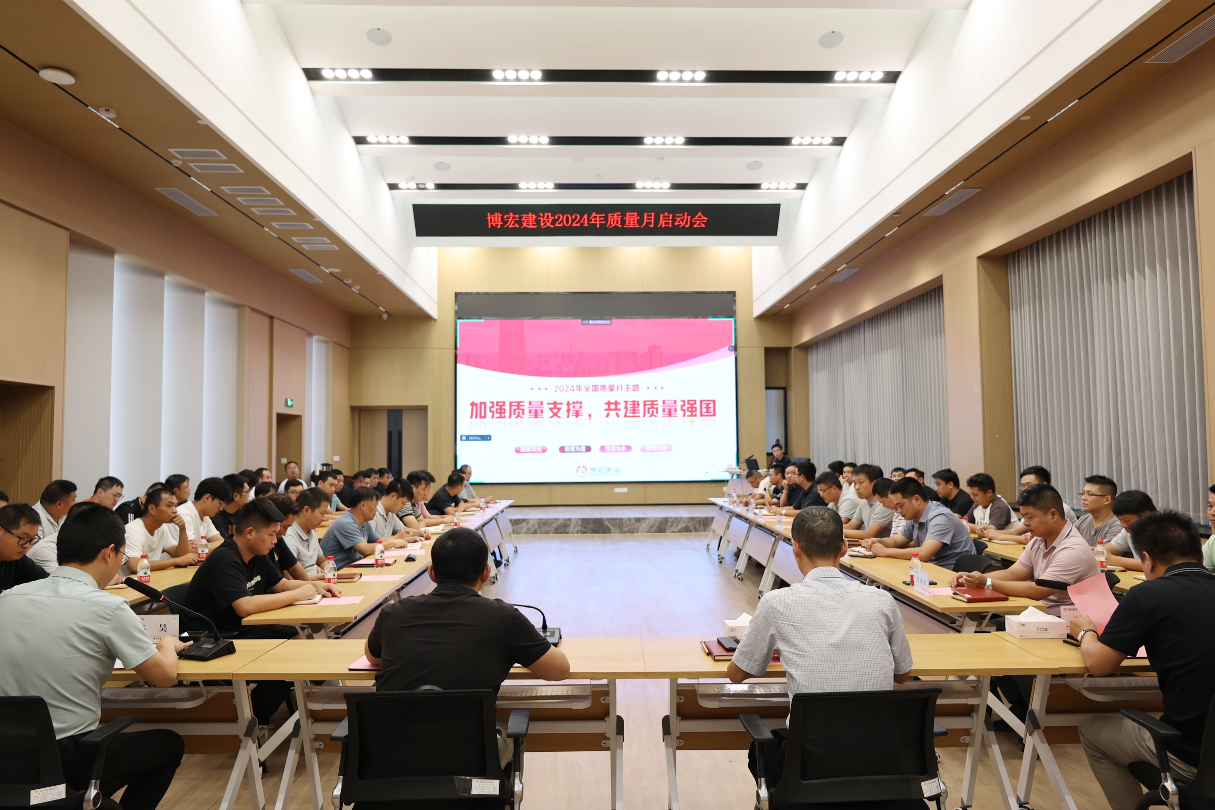 8月29日下午,博宏建設(shè)舉辦以“加強(qiáng)質(zhì)量支撐,共建質(zhì)量強(qiáng)國(guó)”為主題的2024年“質(zhì)量月”啟動(dòng)會(huì),黨委書(shū)記、董事長(zhǎng)、總經(jīng)理鄒勇,總經(jīng)理助理李暉,市內(nèi)外各項(xiàng)目部負(fù)責(zé)人及質(zhì)量崗位人員90余人參與活動(dòng),集團(tuán)質(zhì)安部部長(zhǎng)程振東應(yīng)邀出席本次活動(dòng)。會(huì)議由公司質(zhì)量管理部部長(zhǎng)姜昊主持。